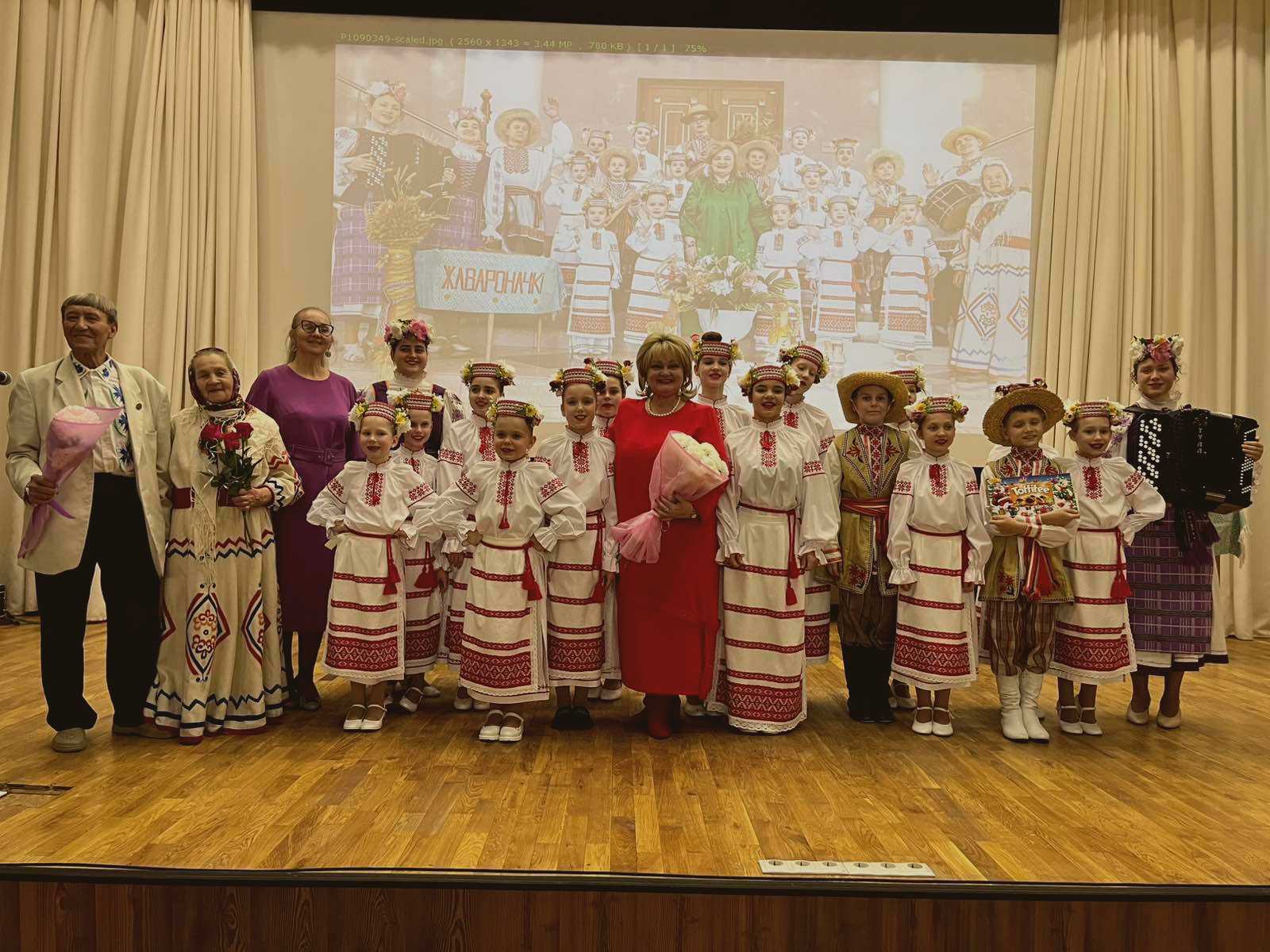 На сцене образцовый фольклорный ансамбль «Жавароначкі».